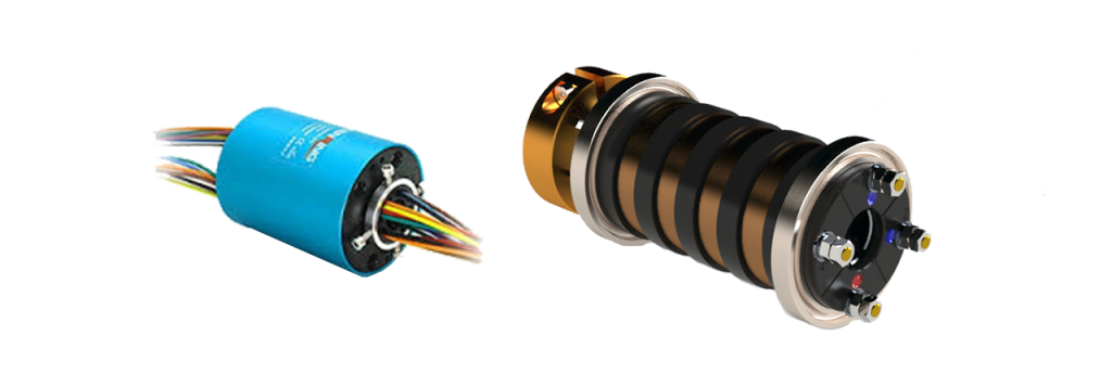 Conectores Rotativos padrão em um sistema modular para transmissão de energia elétrica de até 25 A, sinais analógicos ou digitais. Pode ser combinado para diversas aplicações. Eixo oco de até 60mm, proteção até IP64.